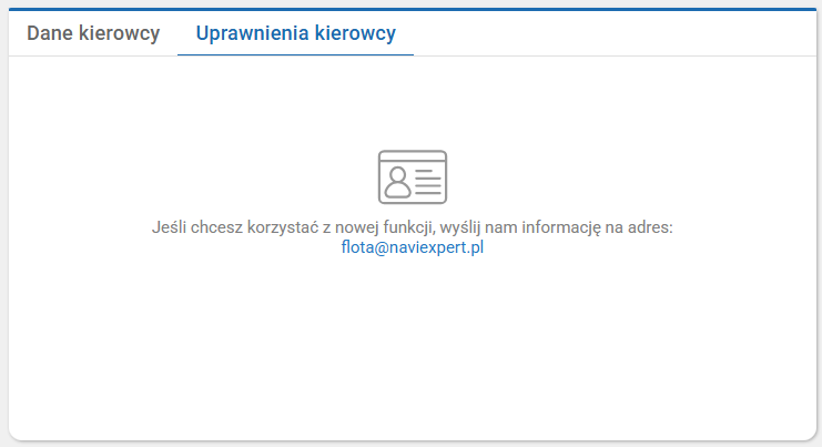 Aby skorzystać z nowej funkcji, należy wysłać maila na adres flota@naviexpert.pl. Wiadomość powinna zawierać dane firmy oraz informację o chęci skorzystania z nowej funkcjonalności weryfikacji uprawnień. O aktywacji funkcji dla Twojej floty poinformujemy Cię w wiadomości zwrotnej.