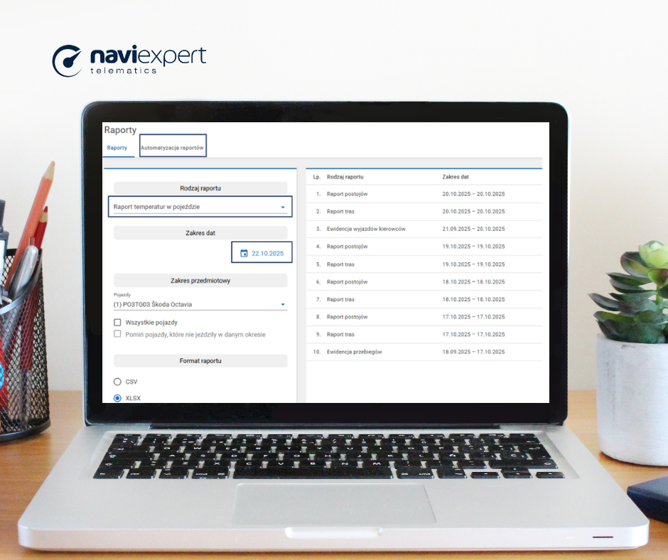 Dlatego coraz więcej firm transportowych i dystrybutorów wdraża systemy telematyczne, które pozwalają na ciągły pomiar i automatyczne raportowanie temperatury. Jednym z nich jest NaviExpert Telematics – rozwiązanie, które nie tylko rejestruje dane w czasie rzeczywistym, ale także umożliwia tworzenie wiarygodnej dokumentacji przebiegu transportu. Dzięki raportom generowanym przez system fleet managerowie mogą łatwo wykazać zgodność z wymogami sanepidu, inspekcji weterynaryjnej oraz audytów GDP, bez konieczności ręcznego archiwizowania pomiarów.